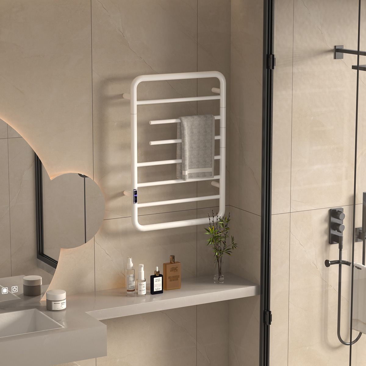 8桿時控開關(guān)電熱毛巾架 8 bar time switch heated towel rail 材質(zhì)Material:SS201/SS304 功率Power:220V/120W 表面Surface:White Painted 白色噴塑 尺寸Size:550*110*800mm 包裝Ctn size:570*130*830mm